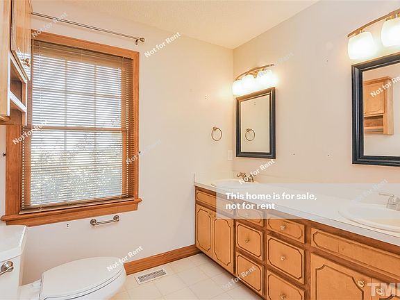 This Garner two-story cul-de-sac home offers a porch, a deck, hardwood flooring, a fireplace, a den, master bath dual sinks, a master bedroom walk-in closet, and a three-car garage.