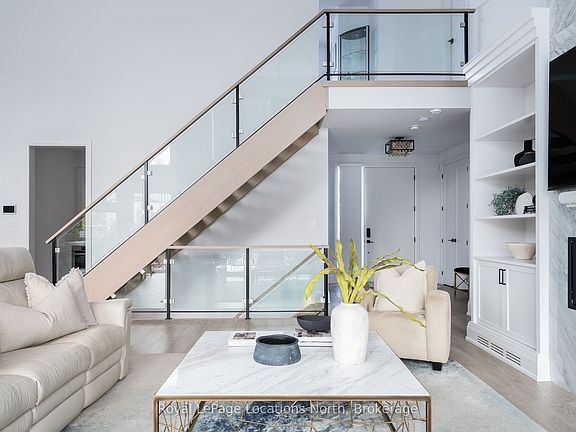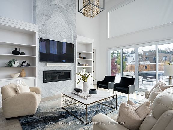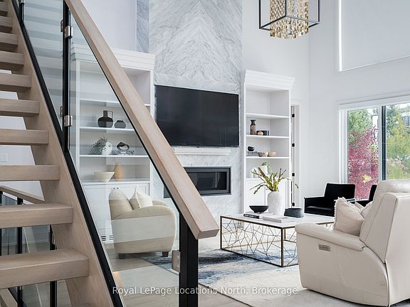 Welcome to this stunning luxury residence, perfectly tailored for executive living and entertaining. From the moment you step inside, you'll be captivated by the attention to detail, the quality of the construction, the modern sophistication, and high-end finishes throughout. The main floor features an elegant two-piece powder room and a serene primary suite boasting a spa-inspired five-piece ensuite and a custom walk-in closet with built-in organizers. Oversized luxurious tile flooring flows seamlessly into the heart of the home a gourmet chefs kitchen complete with a Thermador gas range and dishwasher, Fisher & Paykel built-in espresso machine and fridge, alkaline water filtration system, and a beautifully equipped butlers pantry with Bosch speed oven. A dramatic two-story tiled fireplace anchors the great room, with custom built-ins enhancing both function and style. The executive office offers sophistication with built-in cabinetry and glossed finishes, ideal for working from home. Contemporary glass and metal railings complement wide-plank white oak flooring, creating an airy, upscale ambiance. Downstairs, enjoy the ultimate entertaining space featuring a state-of-the-art home theatre, custom wine cabinet, quartz counters, radiant in floor heat, custom built-ins throughout, a full three-piece bath, and two spacious bedrooms one currently outfitted as a private gym. Unwind in the wet sauna after a long day. Upstairs, two more generous bedrooms each feature large closets and share a four-piece bath and a private living area a perfect teen retreat or guest suite. Step outside to your own private oasis: beautifully landscaped grounds with a south-facing yard, inground sprinklers, natural gas fireplace, hot tub, and a swim spa ideal for both relaxation and entertaining. The home is filled with natural light in every room, enhancing its warmth and elegance. ELAN Smart Home system controls lighting, media & more via touchpad (100k upgrade). THIS HOME WILL IMPRESS.
