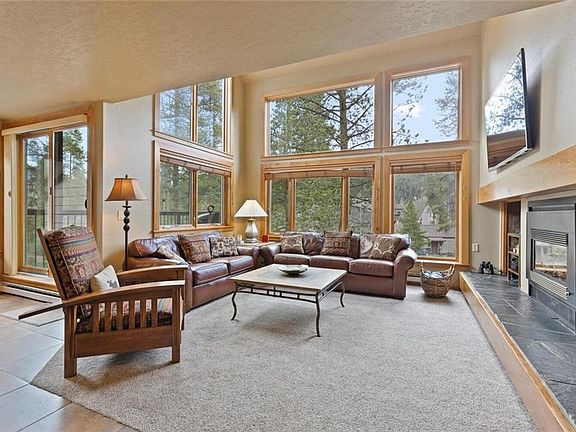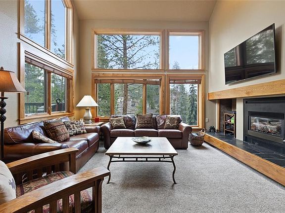 Top floor corner 2Bd/2Ba with big vaulted ceilings and walls of windows and sunlight. Updated with granite counters throughout, carpet, newer cabinets and ss appliances in the kitchen. Nestled in the pines with privacy and mtn views. Convenient 2nd level access. Developments exterior recently renovated including new roof, windows and slider. Plenty of storage with 3 owners closets. Easy access to the ski slopes with 2 shuttle stops. Clubhouse with large indoor pool and hot tub.