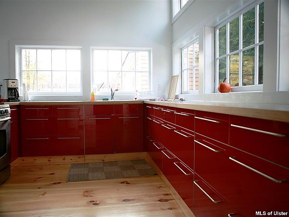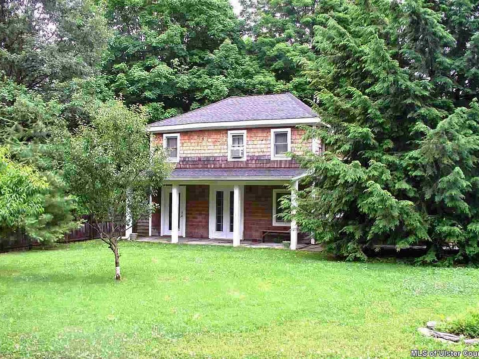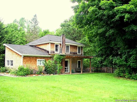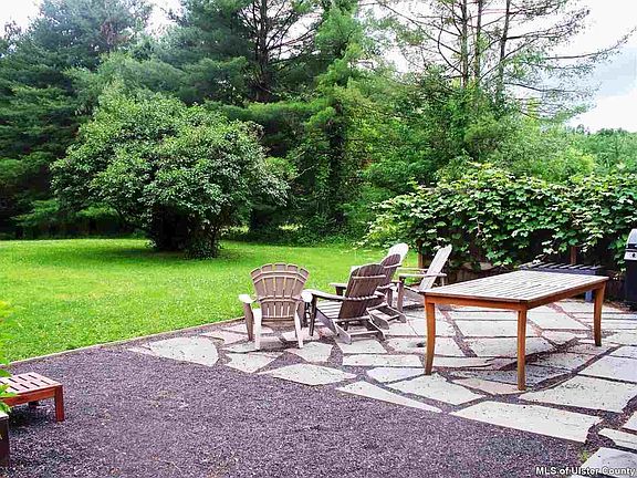 ACCORD NY. CHARMING SECLUDED FARMHOUSE. This special property located in a setting reminiscent of the peace and tranquility of a Holiday in Tuscany, complete with Blue Stone patios, separate Pergola/Veranda, lush rolling lawns and beautiful gardens. The interior is perfectly appointed with wood floors and spacious yet intimate rooms. Extremely well designed. Exceptional sunfilled gourmet kitchen, complete with custom cabinetry and a double bank of windows . French doors lead to this beautiful setting with meandering blue stone paths. Separate oversized garage, with electric, is perfect for studio or workshop.