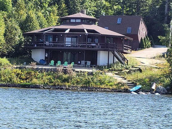 An unique and eye-catching property with 118 feet of prime shore frontage on highly desirable Lake Wentworth - don't miss out on this custom built octagonal deck house on 3+ private acres with stunning lake, island and mountain views! This 3 bedroom, 2 bath home features exposed post and beam construction with a magnificent stone fireplace in the sunken living room with the kitchen, dining room, bedrooms and baths situated around it. Step outside and find your "happy" place on the wrap around deck where you'll be amazed by the summer sunrises and sunsets. Downstairs is the walk-out basement that provides storage plus a finished area with a bar for entertaining and guest quarters. There is more storage in the detached garage that has 3 levels including a workshop area, full loft and parking space for 3 cars and/or boats. An expansive beach area and sandy lake bottom are ideal for safe swimming and launching your canoe or kayak where you'll likely encounter resident loons and great blue herons. Lake Wentworth is a 3,000 acre lake with 20 islands; nearly 4 miles long, it is prized for excellent fishing and boating including access to Crescent Lake via the Smith River where you can dock your boat and walk to the downtown shops and restaurants on the Bridge Falls Path. Showings start at the public Open Houses on Saturday, September 9th from 1 PM to 3 PM and Sunday, September 10th from 1 PM to 3 PM. Sellers request that all offers be submitted by 5 PM on 9/12/23. No Drive-Bys.