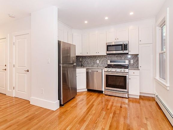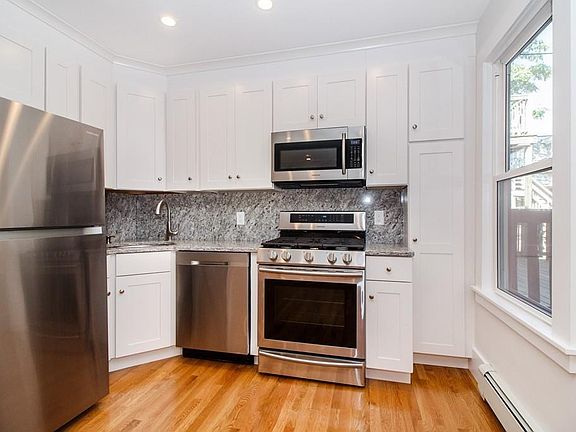 No detail has been overlooked in this renovated Eagle Hill one bedroom with in unit laundry and ample outdoor space! Brand new open concept kitchen features Samsung stainless appliances, granite countertop with full backsplash and white shaker cabinets opening to a light-filled living room/dining area featuring hardwood flooring and access to private deck. A large sunny bedroom provides great closet storage and built-ins. A large fenced yard features a brick patio for grilling and plenty of garden space. Additional basement storage available. The property is an Eagle Hill showpiece with a historically renovated facade and notable detail. Just a short walk to Airport T Station on the Blue Line. Enjoy the tree lined streets, pocket parks and neighborhood restaurants all within a few blocks. First, last, security, broker fee, income verification and excellent credit required.