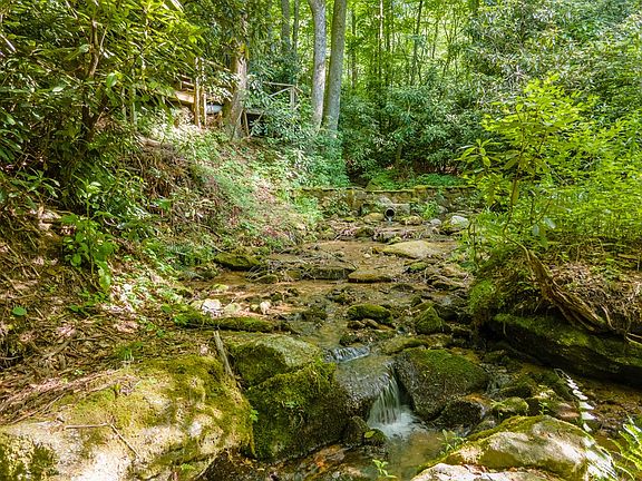 Discover your own slice of paradise in the mouintains of Highlands, NC! Surrounded by mature mountain laurels, this enchanting 2-bedroom, 2-bathroom cottage boasts a private rushing creek, a dam, your very own bridge, and hiking trails leading to a serene flat meadow. Inside, the open kitchen and living room, anchored by a cozy fireplace, provide a warm and welcoming space for relaxation and entertaining. Step through the sliding glass doors to an expansive deck overlooking the picturesque creek, perfect for unwinding to the soothing sounds of nature. The rolling 4.75 acres of flat, usable land offers endless opportunities for outdoor activities and serene moments. Conveniently located just seven miles from downtown Highlands and only an hour and a half from Asheville Regional Airport, this home offers the perfect balance of seclusion and accessibility. At over 3,000 feet elevation, you'll enjoy cool, refreshing mountain air during the warm summer months. Don't miss the opportunity to make this picturesque mountain retreat your own – a perfect blend of natural beauty and modern comfort awaits!