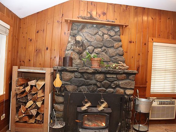 Beautiful country home just off of Lake Zoar, Southbury, CT. on one acre in the woods. Knotty pine, tongue and groove V-joint walls, hardwood and tile floors. Three bedrooms, 2 ¾ baths, 1,300 sq. feet, vaulted ceilings, skylights, log siding, built-in hutch with cabinet and shelves, workshop, two sheds, deck, BBQ area with chimney and concrete counter, carport, very quiet, comfortable. Fireplace upstairs, wood stove downstairs. Sun room / dining room facing lake, laundry room, office, mother-in-law quarters or extra bedroom/bathroom downstairs with private entrance. Eco-friendly, water efficient. Easement to lake. Easy access to 84. Principals only. Many contents negotiable, appliances included.