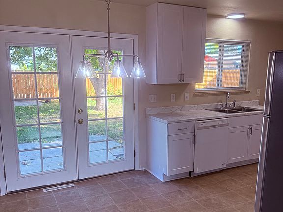 Lovely three bedroom, one bath residence with a newly remodeled kitchen and bathroom. This is a 1,124 square-foot home with hardwood floors in the living room and also in all the bedrooms. It has washer and dryer hook ups, attached garage, and features a large fenced backyard. Kitchen includes a refrigerator, range, dishwasher and microwave. Looking for one year lease and will consider one small dog. Tenant pays for all utilities. Tenant pay for all utilities.
