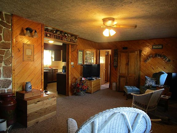This sturdy, ranch style home offers one the opportunity to be located in town, with all the conveniences, and yet experience the tranquility associated with country living. The home is situated on a dead end street with numerous access points, and offers beautiful views of the surrounding hills and the town of Weston, WV. The home has 3 bedrooms, 2 full baths, living room with tongue & groove pine walls and a corner fireplace, a kitchen / dining area with the utility area located off the master bath. The master bedroom has "shaker" style walls. The master bath has been remodeled and features a Jacuzzi tub with water jets, beautiful tiled floors and walls, accented with custom made oak cabinets, doors & oak trim. Another unique feature of this home is the "Castle Bedroom." This bedroom was made to look like a castle at the request of one of the children. The room has tile walls made to look like stone and wooden beams and posts to give it the feel of a castle room. There is a covered porch from which to relax and enjoy the beautiful views and a back deck. Additional structures include a detached, 3 stall garage and work area as well as a quaint "blacksmith shop." The level yard is fenced in the front and can be easily maintained, as well as offering room for a small garden. This home is located near I-79, Stonewall Jackson Hospital, stores, churches, schools, restaurants and numerous other conveniences. The location is less than 30 minutes to Clarksburg, Buckhannon and Glenville. This would make a great starter home or a place to enjoy the golden years. The motivated Sellers have REDUCED THE PRICE to $114,900.00.