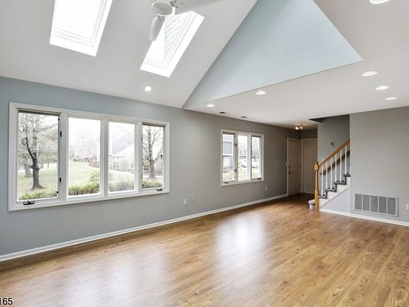 Bright and sunny Ashley model End Unit in a great location w numerous updates. Open floor plan. 2 BRs + a Den and 2 1 2 baths. Beautifully updated and enlarged EIK has sliders to patio w privacy fence. Updated master and hallway baths. HVAC'15. HWH'19. Brand new water-resistant, wide plank floors on 1st level. Freshly painted interior in greyish tone. Spacious LR w vaulted ceilings and skylights. Den w fireplace. Spacious master bedroom. 2nd bedroom w walk in closet. Convenient 2nd floor laundry. Storage room. Attached garage. Near Lord Stirling Stables. Location close to town center, schools, shopping, highways and NYC Midtown Direct trains. Beautiful community of 150 homes on 53 acres of manicured grounds w outdoor pool and tennis court. Excellent Bernards Twp. schools. Cedar Hill elementary school