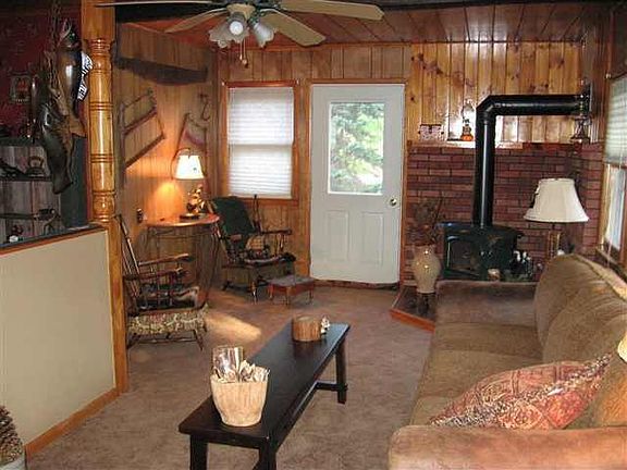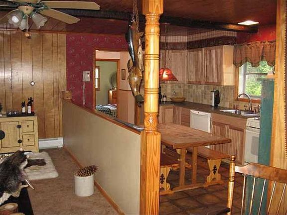 Cozy year round home walking distance to Sacandaga Lake. Resident of this home will be members to the Silver Bay Beach Club. Roof 1 yr, new garage doors, driveway and carpet. Seller to install new vinyl siding and rear windows, buyer gets to select siding color! Water source is a drilled artesian well. Gas stove in living rm makes this Adirondack decorated home all the cozier. Large pond across the street makes for a great view. 4th BR upstairs could be Den/Family Rm. Cute play house behind garage.