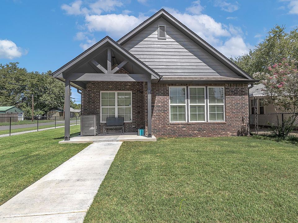 Seller Relocated!!! BEAUTIFUL 2021 BUILD in established neighborhood. Close to shopping and Hwy access. Full Brick! 1547 sq. ft, 3 bed/2 bath/2 car garage on corner lot. Vaulted Ceilings in popular open concept living, dining and kitchen. Cook's kitchen with pantry and all kitchen appliances remain. 9 ft ceilings in bedrooms. Granite throughout. Private outdoor living area with fire pit. Gas connection available for future outdoor kitchen/grill. 12x24 shop w/concrete floor. 30 amp outdoor RV outlet. Sprinkler System
