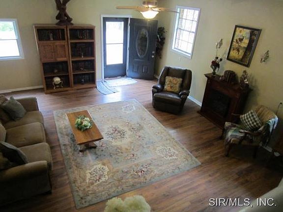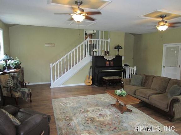 Call 618-786-2036, ask for Wendi Mielke to view this spacious five bedroom edge of Hardin, park like setting. Concrete drive leads to this rambling Tri- level, on a private, no outlet 3.5 acres. Kitchen features peninsula work counter, built in oven/cook top, dishwasher, open dining to living. Huge 23 x 23 Great room addition, side entry to garage and basement. Lower level family room and three bedrooms, all tiled. Master bedroom offers wood burning fireplace. Electric radiant floor heat, central air 2012. Attached over sized three car garage, floored loft space. Detached older metal building. List of additional information available. Call Today!