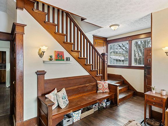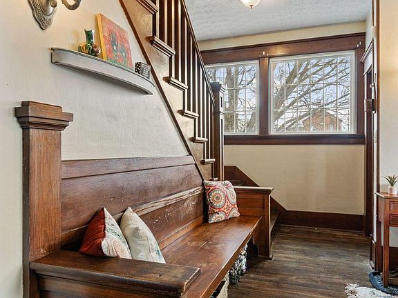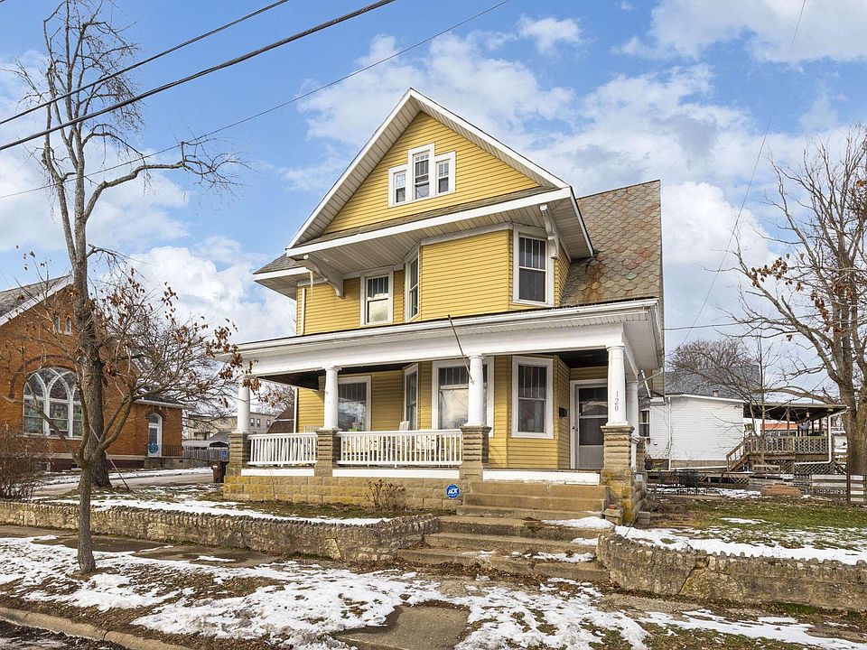 This charming 2 1/2 story home is full of historic character and charm! Original woodwork, gorgeous pocket doors, and a covered porch to name a few. Inside, a spacious living room leads to a family room with a decorative FPLC, and pocket doors open to a flexible den/dining room. The kitchen features a vintage porcelain sink and access to the back porch and 1/2 bath. Upstairs, you'll find 4 generous bedrooms (walk-in closet space!), a full bath with a classic clawfoot tub. And, the third floor offers an unfinished attic - perfect for storage or future transformation. A full basement adds even more storage space along with laundry. This home is perfect for anyone who appreciates vintage charm! Watch the parades from your porch and enjoy the sizable yard! *Located in Downtown Mixed Use*