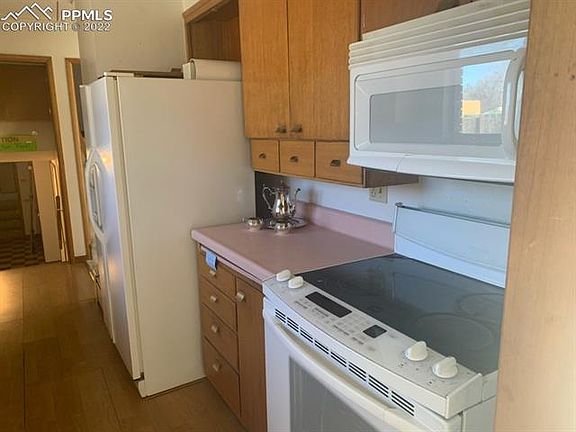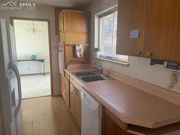 Light and bright custom tri-level home in the popular neighborhood of Broadmoor! Award-winning Cheyenne Mountain D12 schools. NO HOA. Stucco and brick exterior. Spacious front porch. The main level offers a formal Living Room with a wood-burning fireplace, a Dining Room that has sliding doors out to a cement patio, and Kitchen. The Kitchen features parquet floors, a dishwasher, range oven, wall oven, built-in microwave, and refrigerator. 3 Bedrooms with wood floors + 2 Baths up. The Master Bedroom has an adjacent half bath. There are 2 more Bedrooms and a Shower Bathroom on the upper level. Bedroom #3 enjoys a cedar-lined closet. The Lower Level boasts a carpeted Family Room, a Shower Bathroom, and a spacious Laundry/Utility Room with a linoleum floor. Two-car attached garage with built-in storage. Large, 0.34 acre fenced, level lot with beautiful mature trees, a cement patio, and two storage sheds for tools and toys. Close to schools, parks, and shopping. Minutes to the iconic Broadmoor Hotel, the Cheyenne Mountain Zoo, and downtown Colorado Springs. A little updating and some TLC will rejuvenate this home to its great potential! This is an as-is sale.