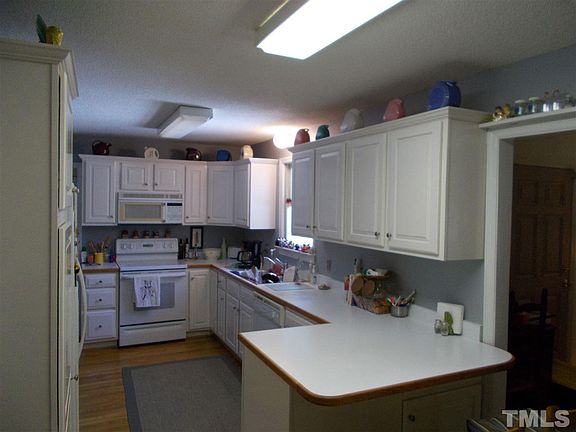 Ranch home with fresh paint, carpet & vinyl flrs. new ceiling fans, blinds. large walk in closets Large Living & Master with vaulted ceilings. Eat in Kitchen with plenty of counter and cabinet space. Detached oversized garage in back yard being used as workshop with shelving and work bench. Garage(27x26)$20k replacement, is wired for a generator to plug in and back feed to House. Easy drive to I-40 by 70 Hwy By-Pass. Close to town of Clayton and Smithfield. Less than 1 mile to intersection of 70.