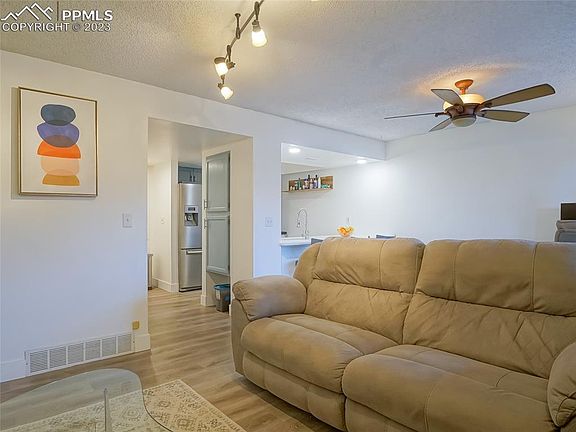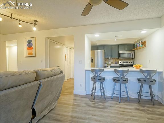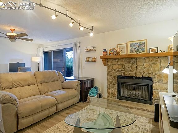Welcome to the beautiful and desirable Rockrimmon area! This stunning ground level, 2 bed, 2 bath condo has just undergone a complete remodel and is ready for you to call it home. The condo has been recently transformed with a full kitchen remodel featuring brand new quartz countertops, large Farmhouse sink, cabinets, and modern lighting fixtures that give the space a sleek and contemporary feel. The bathrooms have also been tastefully updated with freshly painted cabinets, new vanities, and chic lighting fixtures that perfectly complement the modern aesthetic. The entire condo has been given a fresh coat of paint and boasts brand new vinyl plank flooring throughout. As soon as you enter this charming condo, you are greeted with a bright and open living, kitchen, and dining area, which features sliding glass doors that lead to a covered patio, perfect for enjoying those beautiful Colorado sunsets. Warm up on chilly evenings with the cozy wood-burning fireplace, located in the living room. Down the hall, you'll find a convenient laundry room and two spacious bedrooms, including a primary bedroom with an en-suite bathroom and a large walk-in closet. The complex itself features a lovely pool and picnic area, ideal for soaking up the sun and enjoying those warm Colorado summer days. Located in the award-winning Academy-20 School District, this condo is just minutes away from the Air Force Academy and a variety of fantastic restaurants and shopping options. Plus, with its central location and easy access to I-25, you'll have everything you need right at your fingertips. This one-of-a-kind condo is a rare find, so don't miss your chance to make it yours. Come check it out before it is gone! (Includes an assigned parking spot #139, which is located right outside the patio door for easy access.)