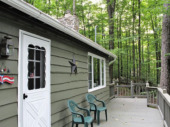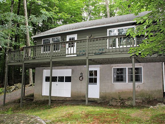 Original owners have meticulously cared for this Cape Cod style lake house...this 2nd tier property is tucked away in the woods on just over 1 acre (3 lots) while still offering seasonal lake views...main level features Eat-In Kitchen, Living Room with Vermont Castings Wood Stove, 2 Bedrooms and a full Bathroom...2nd floor has 2 additional Bedrooms and Bathroom with a shower and plenty of storage...unfinished basement with garage door allows for easy access to store the toys...spacious deck to relax on and enjoy the sights and sounds of nature...Paupackan Lake Estates Community offers non-motorboating lake with sandy beach, playground and pavilion.