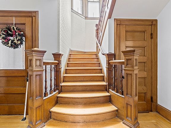 Welcome to tour this Historic Queen Anne Victorian home with a tower and a turret. This home offers 10 plus rooms with 5+ bedrooms, a parlor and second floor center hallway. Many amenities, including hardwood flooring throughout the 1st and 2nd floor, authentic original woodwork, crown moldings, 2 fireplaces, pocket doors, and several stained glass windows all 3 levels.There are three full baths & one-half bath. Two baths have been updated. The kitchen has concrete countertops, a decorative ceiling and a large pantry which leads into the formal dining room. There is a two-car garage, covered carport, a welcoming wrap around porch, and nice grounds which offer privacy and a fence. This impressive home is situated on a lovely residential street that is convenient to all your needs. It is close to downtown, the library, beautiful Stanley Park, Westfield State University, Noble Hospital, the YMCA and so much more. For travel, Bradley airport is nearby as is Northern Connecticut.