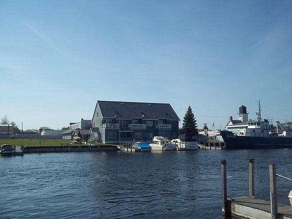 Fully furnished 2 bedroom, 1.5 bath condo on the Cheboygan River. Located in the downtown area for walking access to dining, shopping,theatre and movies. Great open floor plan with private deck in front. Ground level condo at the north end for more privacy and beautiful views up the river to Lake Huron. Parking Covered parking unit included. Dock is available for an additional cost.