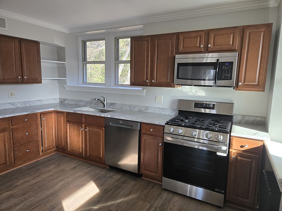 Now Available to Qualified Tenants! Lots of room and charm. Pull into your own driveway with three parking spots waiting. First Floor: Spacious kitchen with new appliances. New washer & Dryer! Bright and sunny Dining room and Living room, with electric fireplace. Bright and sunny Sunroom. One bedroom on 1st floor with full bathroom. One office 1st floor. 2nd floor: two bedrooms, one extra-large room with a slider door to deck! Hallway closet and full bathroom. Full unfinished basement. Nice back yard! Walk to convenance store, restaurants, Salon, Docs and Physical Therapy as well as dentist and more! Award winning schools. Enjoy the many community events. Easy access to route 1, 52, and 82. Tenant pays: electric, natural gas, water, cable, internet, trash, phone, renters' insurance. Pet fees. Landlord pays: taxes, Insurance, sewer, snow plowing, mowing. Two vehicle max. 5 occupant max. Pets: Two dog max.