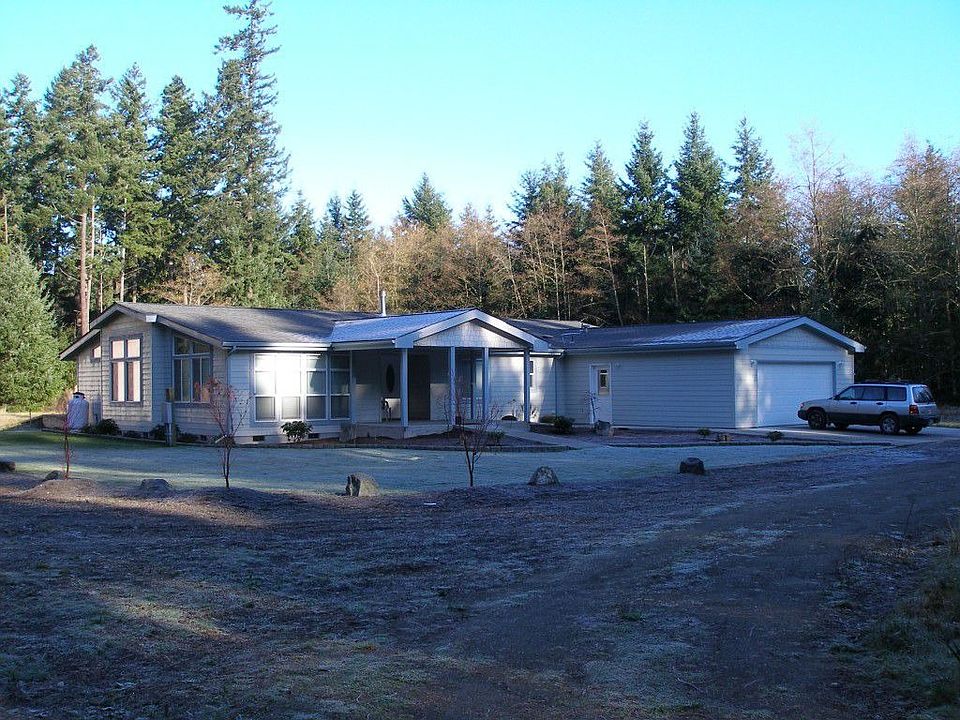 "Big & Beautiful" newer triple-wide manufactured home on 9+ private, wooded acres and fruit, nut, and berry orchards. Exquisite features with 3 bdrm, an office converted to bdrm, a formal dining, a living rooms, an eat-in kitchen with island & SS appliances, a family room with fireplace, and vaulted ceilings. Spacious master bedroom suite with jetted tub and separate shower. Attached is a two car garage converted to a studio apartment. Installed in 2017 were two Mitsubishi ductless heating & cooling systems for the house and greenhouse. This system has truly cut energy costs down almost by half and is more efficient than the central heating system that was originally built into the house. In 2018, a complete roof replacement was done. In Oct. 2022, Solgen solar panels were installed on the roof. In Feb. 2023, new windows were installed by Harley Exteriors throughout the kitchen, all bedrooms, all bathrooms, and garage which is a converted guest room. The property has an insulated 36x60 workshop with two RV doors, 2nd floor, a fitness gym, & concrete floor. Built to the workshop are a large greenhouse and a garden equipment shed. This property is truly move-in ready & a pleasure to view.