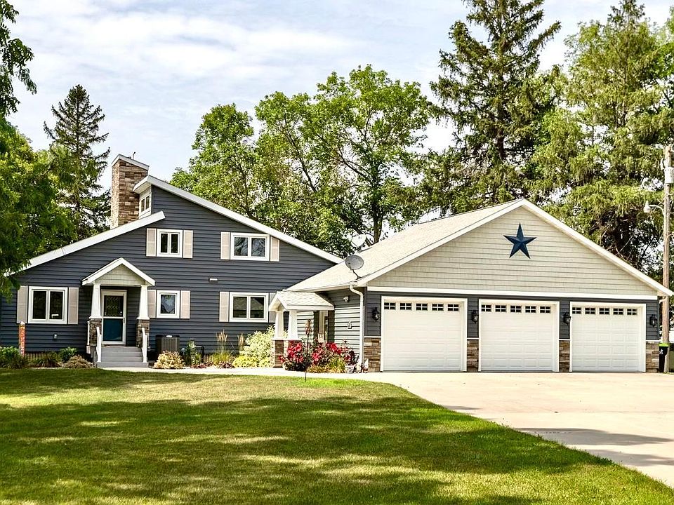 Nestled on a beautifully landscaped 1.66-acre lot, this 3,000 sq. ft. home seamlessly blends classic elegance with modern comforts. The property boasts newer siding and roof, complemented by an insulated and heated 3-car garage. Inside, the home offers 3 bedrooms, a den, and 4 bathrooms, providing ample space for family and guests. The main floor features a stunning fireplace crafted by renowned mason Lew French, adding a touch of artistry and warmth to the living area. The primary bedroom on this level includes a luxurious en suite with a jetted tub, steam shower, sauna, and an expansive walk-in closet complete with laundry facilities for ultimate convenience. A sun porch with a stamped concrete floor offers a serene view of the expansive backyard and patio, perfect for relaxation or entertaining. Downstairs, the basement's cozy fireplace creates an inviting atmosphere, making this home a true sanctuary designed to meet all your needs.