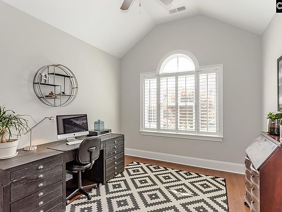 - Living Room: Fireplace, Floors-Hardwood, Molding, Books, Ceiling Fan, Recessed Lights