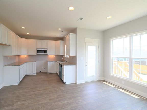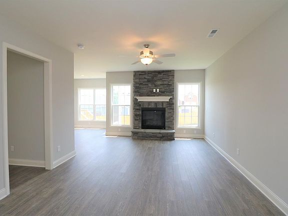 This is a three bedroom plan with a charming exterior design that includes a hip roof and a covered entry. The family room overlooks the rear yard. The kitchen highlights include a window above the sink, good work and cabinet space, and a big pantry. A three-sided breakfast nook is surrounded by windows overlooking the rear yard and opening to the deck. The master bedroom is impressively large, and the master bath has a fully tiled shower with built-in shelves. The master vanity is raised and upgraded to a double bowl. Other great features included with this home are: finished walk-in attic storage area, tile flooring in all wet areas upstairs, laminate floors throughout the 1st level, stainless appliances and gas range, ceiling fans, and much more.