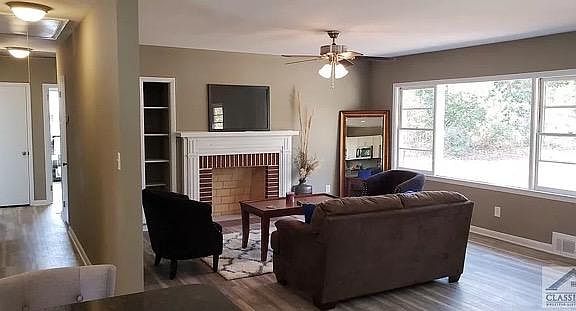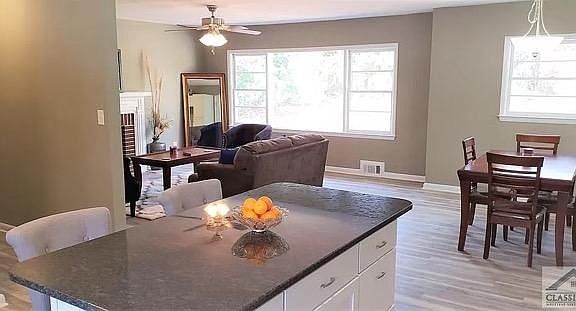 Beautiful, recently remodeled, 3 bed 2 bath house pet friendly with fully fenced in back yard on the bus route. Refrigerator microwave and on site laundry are included. Close to Downtown Athens, UGA, convenient to I85 (20 miles) Large shade tree to keep cool in summer and loses its leaves in the fall for a warm sunny backyard during winter. Nice screened in porch and patio area in the back. Attached carport with paved driveway and off street parking. Nice large open floor-plan throughout the kitchen, dining and living area with 3 private bedrooms. No carpet anywhere, LVP (waterproof with hardwood look) throughout and tile in one bathroom. Large shared hallway bathroom and private bathroom in the master. All three bedrooms are similarly sized. Real granite counters in the kitchen and bathrooms. Decorative fireplace in the living room. Brand new HVAC and furnace (November 2021) for efficient reliable comfort. Nice washer and dryer included which is big enough to wash and dry a typical king size comforter. $50 application fee, No smoking inside the property. Renter pays utilities. Pets require no pet rent but additional $350 refundable deposit. Pets must be well behaved, use the bathroom outside (no indoor litter box) and be approved by property management. Tenant responsible for utilities including water trash and sewer through Athens-Clarke County, Georgia Power, Natural Gas, and Lawn Maintenance.