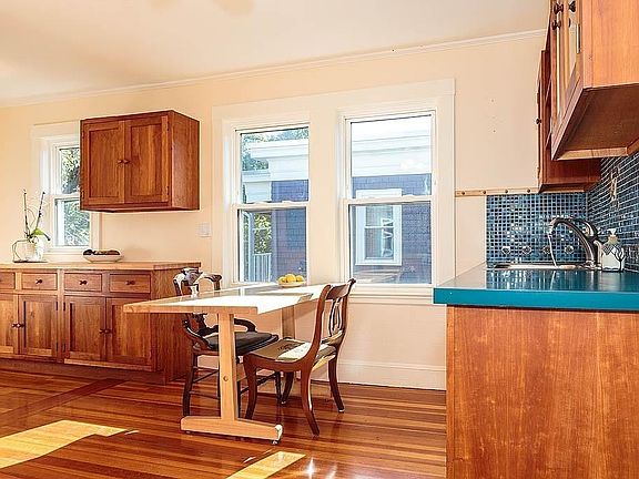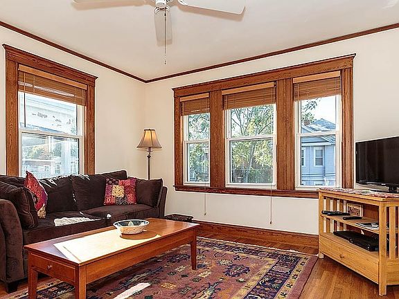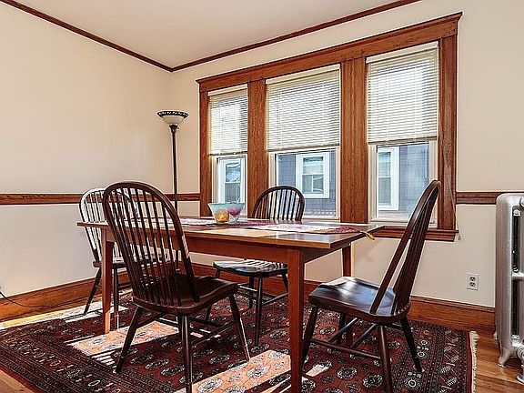 Welcome to this sun drenched Parkside top floor condominium abutting the beautiful Minton community gardens. This home has wonderful flow and an inviting open floor plan with living and formal dining room showcasing a built-in hutch. Perfect for entertaining! The semi-modern country style eat-in kitchen has custom cherry cabinets and decorative tile backsplash. Direct access to an exclusive front deck as well as a rear deck with beautiful views! You can enjoy your morning coffee in peace and quiet with a great view. The unit boasts two generous sized bedrooms, high ceilings, hardwood floors and natural woodwork throughout. There is also a separate foyer area for welcoming your guests. House is fully insulated reducing costly winter heating bills. Laundry and storage area in the basement. Building is 100% owner occupied. Walk to historic Franklin Park, Doyle's Café and Forest Hills and Green Street train stations.