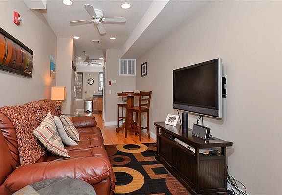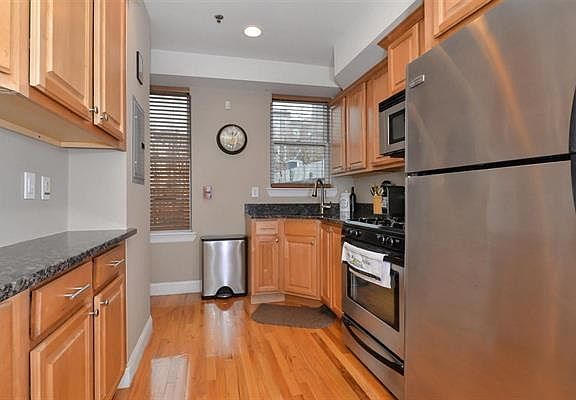 1BD/1BA condo right in the heart of Downtown Hoboken! Upgraded kitchen featuring stainless steel appliances and granite counter tops. High ceilings with recessed lighting give this space an open feel! Finished hardwood floors and ceiling fans throughout. Enjoy the large shared backyard space, with grilling area perfect for entertaining or just enjoy the fresh air. Conveniently located near PATH, NYC bus, shopping dining and nightlife and more.