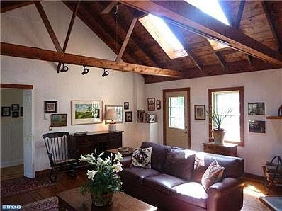 Remarkable value in Upper Makefield Township. This Colonial features 3 Bdrms, 2 full bathroom and oversized family room with random width pine hardwood floors, open beamed wood ceiling and wood stove. Additional features include a 1st floor study/play room, spacious dining room with floor to ceiling bay window and hardwood floors, and a living room with fireplace. Large deck, stamped concrete patio, beaded vinyl siding, oversized carport, and large storage shed all situated on 1.6 acres.