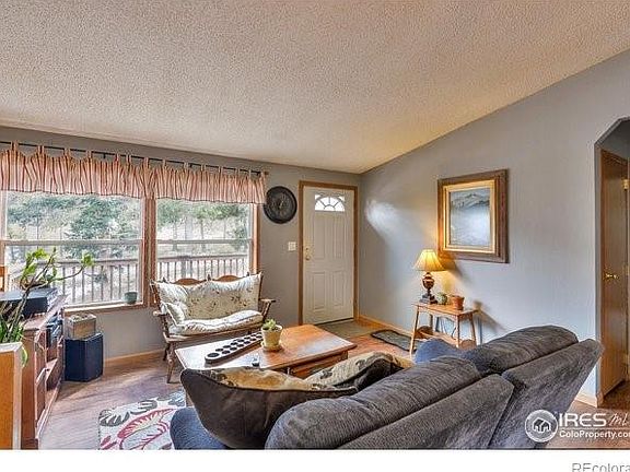 Hidden back in the fragrant pines is a home with fabulous views. Abuts National Forest on West side for you to enjoy long walks or rides with horses. This is Colorado! Property includes an arena & large outbuilding for carport or hay storage. Walk out basement w/ spacious family room for fun activities. Large deck to enjoy that morning coffee while hummingbirds say good morning! No HOA; road association only. 95% finished basement. Close to town for easy commute. Call today for a private showing. NO DRIVE BYS!