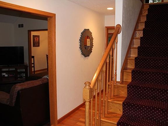 Great 3 bedroom home in Fox Hollow. Hardwood entry leads to the sloped ceiling living room with a brick fireplace. Large eat in kitchen has a large island with plenty of counter space. The first floor laundry has a large closet for storage or use as a pantry. The large partially finished basement has a nice L shaped bar and lots of storage. The 3 bedrooms are on the second floor with a full master suite and a 2nd full bath.