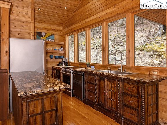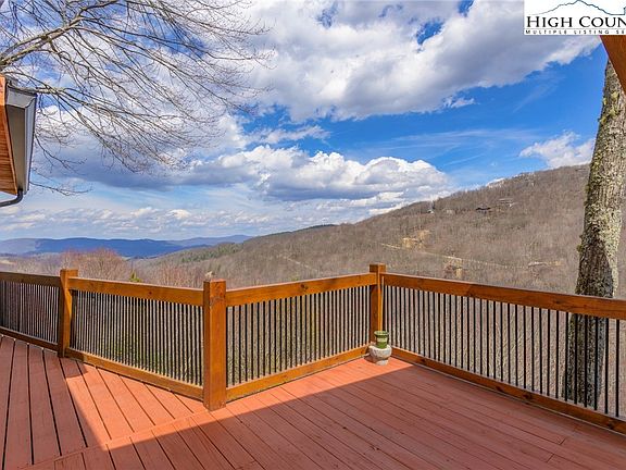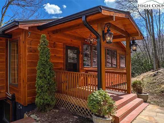 Immaculate log cabin with FOREVER, LONG-RANGE, LAYERED VIEWS, including THREE additional lots. What do YOU think about when you plan the purchase of a mountain cabin? Is listening to the sounds of nature a must? Do you want the ability to view wildlife? Forever mountain views essential? Can you imagine a home that has windows everywhere so that you always know you are in the mountains? Welcome to 120 Woodridge in the vivacious community of Beech Mountain. Relaxing on the decks, you will experience the sound of a waterfall just below the house from Pond Creek Trail. Enjoy the early-morning visits from the "resident" bear family. Mountain views from every window. End of the road privacy with three additional lots for added privacy, view control. A beautiful trail for you to experience just by walking out the door. A mountain oasis that will not disappoint. Sold furnished (with just a few exceptions). Newly-stained exterior. Includes $15,000 of new furniture/furnishings. Larger, metal roof screws recently added. Lower-level bedroom includes bunk beds. Rental projections indicate $75,000 to $85,000 per year. Current Beech Mountain Club membership.