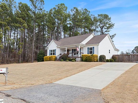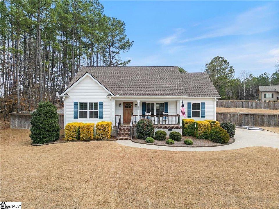 Welcome Home to 120 Wrentree Drive! This 3 bedroom, 2 bath, one-level home (built 2017) is move in ready and packed with updated features. Need space to spread out? This home sits on .75/acre in the Wren School District with no HOA. As you walk through the front door, you are greeted with 12' vaulted ceilings in the living room that is also open to the dining area and kitchen. Natural light shines throughout. The kitchen adorns white custom cabinetry and stainless steel appliances. The large primary suite has a built-in desk/office area, double vanity in the bathroom with lots of storage and a walk-in closet. The two secondary bedrooms are located on the other side of the home and share a bathroom. Outside within the fenced- in backyard, you will find a covered deck and fire pit area- perfect for entertaining family and friends. As an added bonus, the storage shed is included with the sale of the home. Don't wait to schedule your showing!