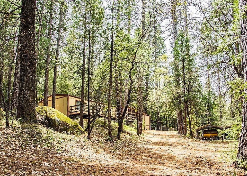Located in the beautiful pines of Berry Creek, Ca. Private country setting situated behind a shade bank of soaring trees on 4.25 acres. Gated access just off the main paved road. Pull thru gates at edge of property leading to road that loops up and around property, past shop and to the home at far rear, then continuing back around to the gated entry. This property is for the most part flat to rolling terrain. Majority is usable. Fully fenced but appears to need some mending. There are two separate addresses here. Two separate power meters. Two septic tanks. Serviced by well water. There were two homes here at one time on opposite ends of property. Existing 3 bedroom 2 bathroom 1973 manufactured home with good sized front deck for relaxation within the trees. There are two covered carports perfect for parking toys, boats or cars. There is also a carport off home itself for plenty of parking space. Perfect weekend getaway retreat or year round set up. Family compound? This property is ready for additional home. Live in existing home while building your new home in the mountain pines. Plenty of upside potential here. A seasonal creek/water run off that rolls thru the property, under a small dilapidated foot bridge & down along some beautiful rock outcroppings. A good sized meadow within the trees scattered in wildflowers. Decent sized shop perched up in the trees above the meadow with power pole/meter adjacent. There is even a horseshoe pit set back in the trees. A peaceful private setting! This property is not Lake Front. This property is situated about 15 minutes above Lake oroville, one of Californias largest reservoirs. Perfect retreat for someone looking to store a boat and hang out on the lake in the summer.