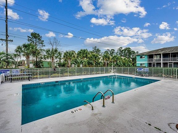 Rarely do units come available in Tradewinds II...if you are looking for an investment, vacation home or primary residence with the ability to ride your golf cart to the beach, then this is the one since golf carts are permitted here. This 2BD/2BA condo located on the 2nd level has a private backyard view. The living room is open to the kitchen and all appliances convey. The master bedroom features a walk-in closet and private bath with walk-in shower. The guest bedroom is adjacent to the 2nd full bath with a tub/shower combo. There is a true laundry room with a full-size washer and dryer. Relax on the screened porch to enjoy the weather year-round. Water heater replaced 8/21. LVP installed in kitchen 5/23. The nicely maintained neighborhood offers a private pool and clubhouse. The low HOA includes water/sewer, cable, internet, trash removal, and exterior maintenance. Schedule your showing today!