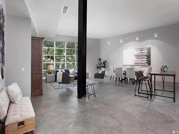 With generous, house-like stature and gracious proportions, this beautifully designed loft features 1 bedroom, 1 bath plus a spacious den, with design elements blending historical details with modern updates. In the expansive living room, soaring ceilings and steel beams rise dramatically above a robust gathering space. An enormous window offers tree-filled views. The open floor plan includes a dining room and a stunning modern kitchen. Off the dining room is a home office with a custom built-in desk and shelves. A large den and in-unit washer/dryer complete this level. Up a short flight of stairs, you'll find a full bath and spacious bedroom, which feels like a private retreat all its own.Minutes away from downtown Berkeley and Emeryville
