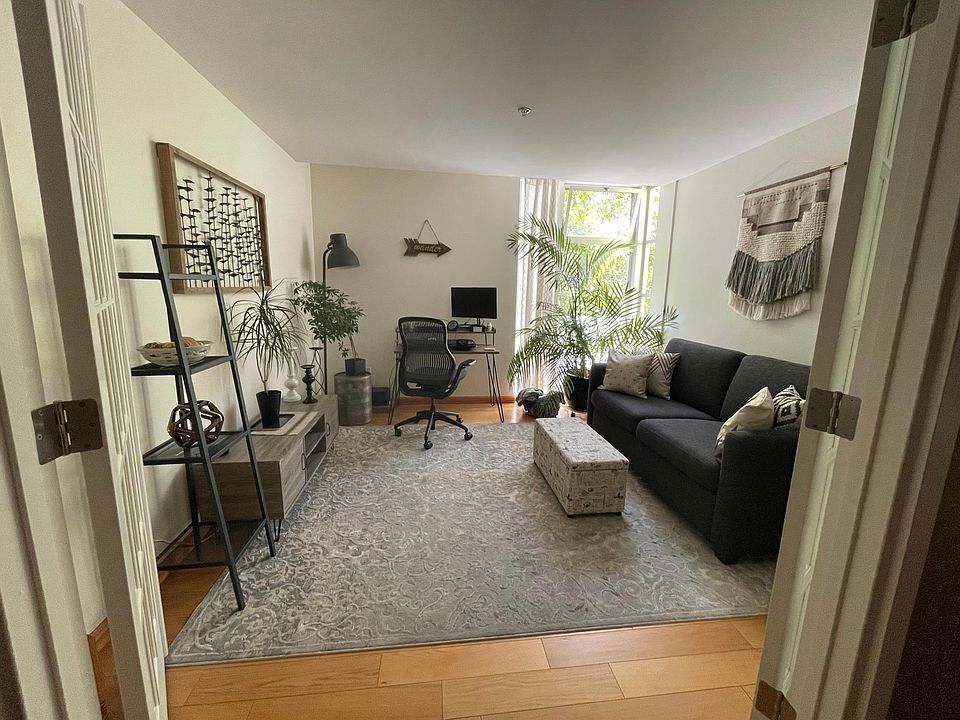 Unique and beautiful condo available for rent in the heart of Emeryville. It is a 1200 square foot condo with 1 large spacious bedroom, 1 full bath, 1 extra room that can be used as an office or a guest bedroom, large spacious living room and dining area and attached kitchen with 14 foot floor to ceiling windows with a lots of light. The living room has a gas fireplace. The kitchen has modern appliances such as a fridge, microwave, dishwasher, stove, and garbage disposal. The unit comes with one parking space in the attached garage. The condo is architecturally stunning. It was Designed by NHP Architects, it has a privacy pedestrian gate with intercom, Dramatic soaring central courtyard with spiral stairway, Roof deck, Stunning interior halls with skylights and light shafts, and a freight elevator. The condo is in a desirable location. close to the 580/80 freeway, close to the bay bridge, Emeryville shopping center and AMC theaters, walking distance to the famous Berkeley bowl and parks and biking trails. 20 min drive to San Francisco and on the border of Berkeley and Oakland. Email or call if interested. Water, heating system and Garbage is included in rent. Renter pays for internet/phone and electricity.