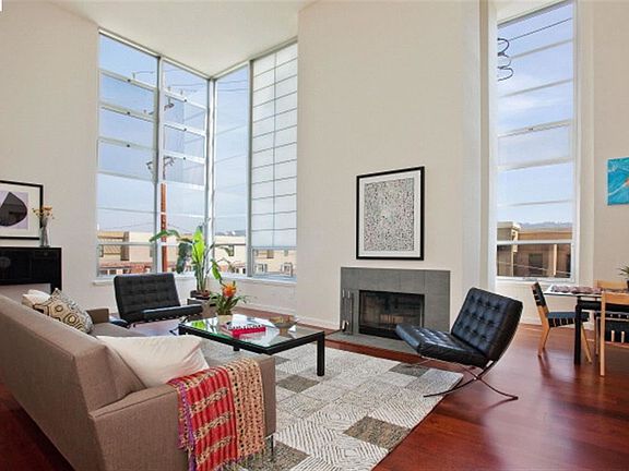This stylish top-floor condo features soaring ceilings, dramatic views and fantastic light. Striking architecture enhanced by Brazilian Cherry floors, floor-to-ceiling windows and wood-burning fireplace. Close to Emery-Go-Round BART shuttle, Emeryville Greenway, Farleys and Prizefighter. Open Sat 1-3, Sun 2-4...