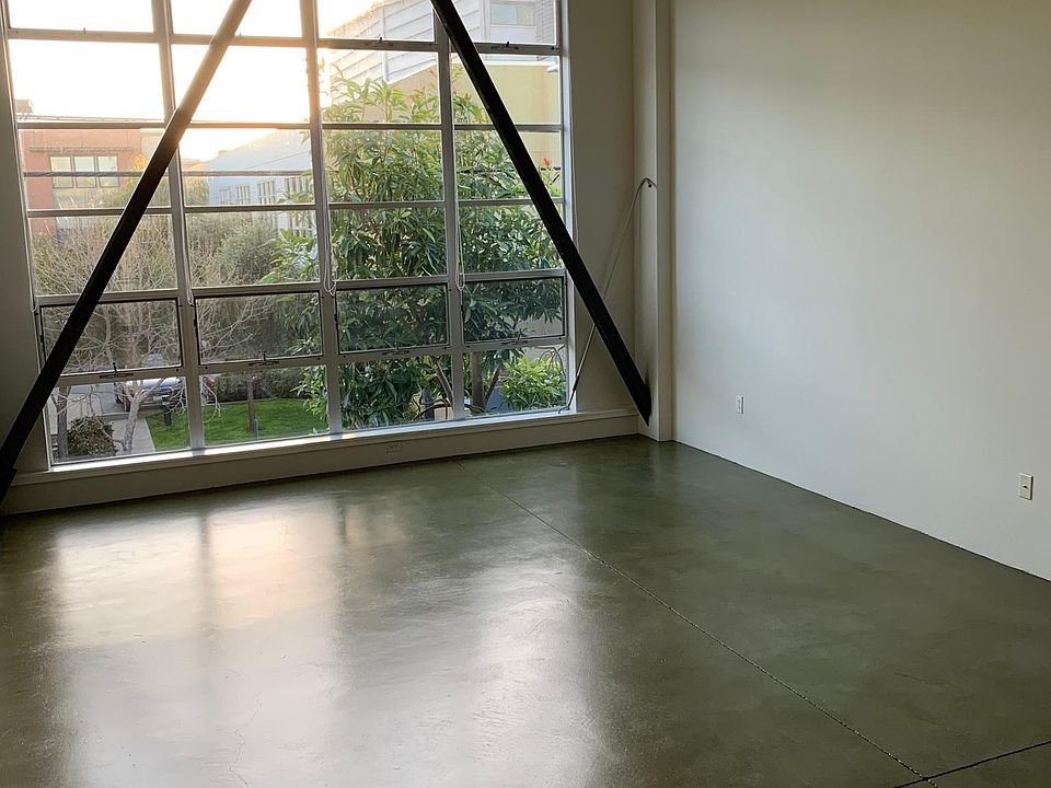 Sunny, spacious newly painted loft located in Oliver Lofts in Emeryville. 1366 sq. ft. Spacious, open living area with high ceilings Wall length original industrial windows that flood with natural light Oak hardwood flooring Open kitchen includes built-in microwave, stainless steel refrigerator, Bosch dishwasher, garbage disposal, halogen electric range with convection oven Glass ceramic cooktop Island Solid black granite countertops Ceramic backsplash Spacious 3 walled room can also be used as extra bedroom/office/study Adjacent custom full bathroom with mosaic tile floor, european sink, glass stall shower Upper level master bedroom with spacious wall length mirrored closet, wall-to-wall carpet and air conditioning unit. Master bath with shower over tub, custom tile and fixtures, solid black granite countertops, linen cabinet Amenities: Stackable washer and dryer in unit Water, garbage, heat and high speed internet included Cable ready Privacy soundproofing double walls throughout unit Walking distance to Starbucks, Peet's, Berkeley Bowl, restaurants, playgrounds, Public Market and Bay Street Mall Easy access to 880/580/BART and Emery-Go-Round Secure building with intercom/telephone entry Secure underground parking, one designated spot Common roof deck with views Terms: Available 9/1/21 1-year lease Small dog ok pending approval No smoking