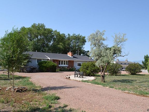 Great location on a corner lot and everything any animal lover would want! Easy access from this 5 acre irrigated property situated on a quiet street. This 3 bedroom, 1 3/4 bath home features a full basement which includes family room with gas fireplace, large craft/storage room or could be converted into 4th bedroom. Gazebo in back perfect for entertaining, fenced backyard, separate fenced garden areas, fruit trees, gorgeous barn with tack room, arena and pasture. Less than a 30 minute drive to Colorado Springs or Pueblo. PRICE REDUCED! Easy to show! New roof on house and barn! SELLER IS MOTIVATED so don't delay!