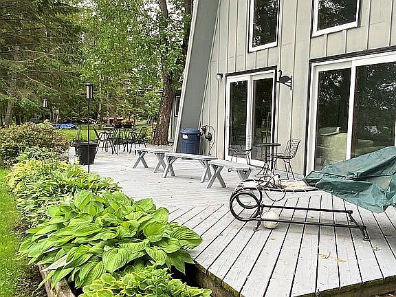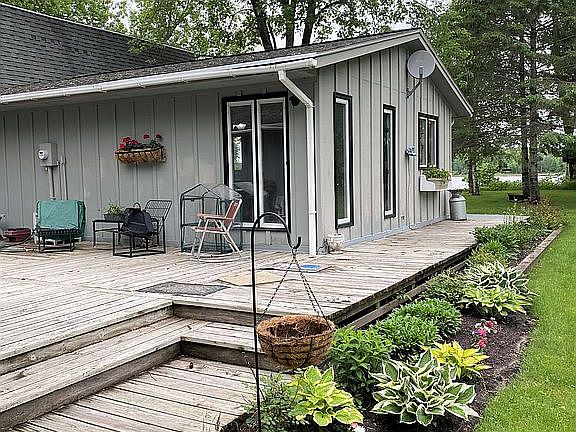 Private waterfront property! Check out this 3 bedroom, 2 bathroom beautiful modified A-frame home nestled on the end of a dead end road just minutes from the city of Baudette. This property has 216' of frontage on the Rainy River! Home features vaulted ceilings, large wood burning fireplace, in floor heat, and oversize windows overlooking the water. The spacious private 2nd floor master suite has a walk-in closet, 3/4 bath, balcony, and loft area. Outside boasts large beautiful wrap around decking and walkways, mature trees, and gorgeous landscaping.