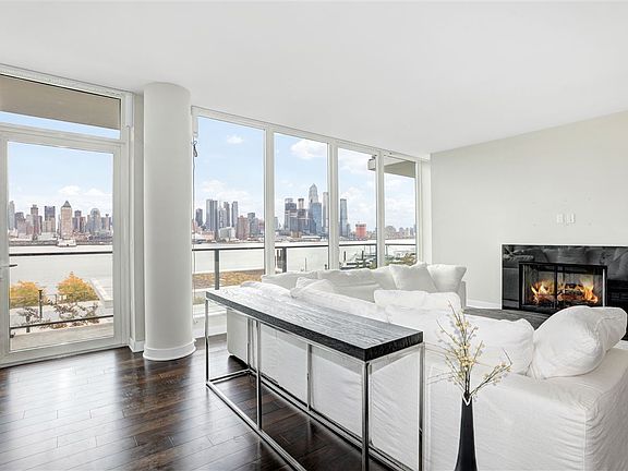 An ever-desirable corner unit in the highly esteemed Avenue Collection, this home is pretty much perfect. Giant glass windows picture frame the real New York City skyline. Ornate light fixtures hover over hardwood floors. You will dine on the waterfront every evening, then warm by the fire or chill on your own wrap-around terrace. There's plenty of space for a home office; Two bedrooms, yours has an elegant en-suite bath; Multiple guest bathrooms, motorized window treatments, and two garaged parking spaces. Immediate occupancy is available, with furniture should you please. An affluent neighborhood on Weehawken's wonderful waterfront, The Avenue Collection's residents love their concierge, challenge themselves in the gym, lounge by the pool, play on the grass, and savor the sunsets over the Greatest City in the World.