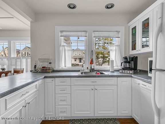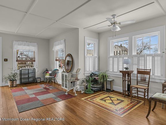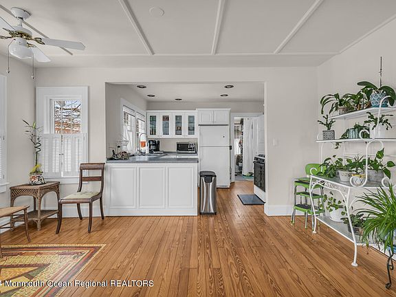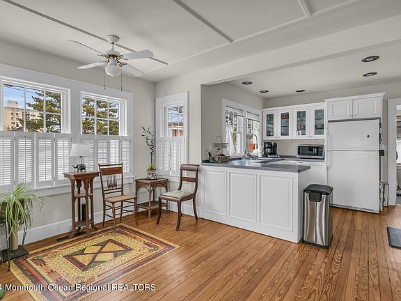 Immerse yourself in the coastal lifestyle within this 2-bedroom haven at the corner of 12th and Bayview, with a view of the Belmar Marina and the Shark River. A rocking chair front porch welcomes you into an open floor plan adorned with hardwood floors. Recent upgrades, including heat/AC and roof replacements in the last 5 years, ensure a blend of modern comfort and coastal charm. The full basement and attic with 8-foot ceilings offer ample storage possibilities. The beautifully landscaped property provides off-street parking for multiple cars. Only minutes away from Jersey Shore beaches, restaurants, transportation, and shopping, this coastal retreat seamlessly combines comfort and convenience for everyday living.