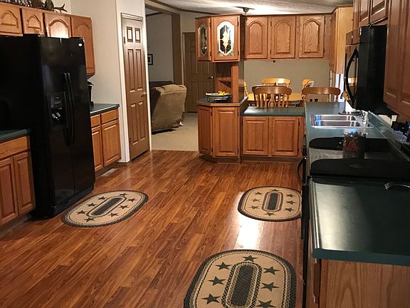 This lovely manufactured home in a quiet country setting and features Central Air, kitchen with plenty of counters, quality oak cabinetry and is fully applianced, dining area, living room with wood burning fireplace, master bedroom,master bath, and a large walk-in closet. On the other end is 2 bedrooms, full bath, sitting room, and a laundry room. New roof was put on 3 years ago