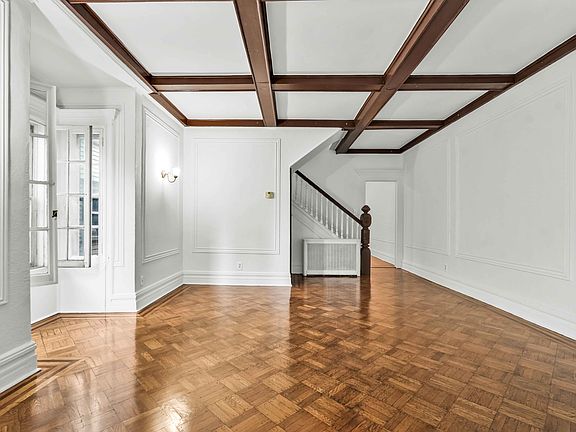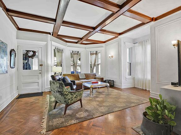 You enter the expansive living floor via an enclosed porch in the Ditmas Park Area (aka Victorian Flatbush). Then, you enter the spacious coffered ceiling parlor room, followed by a formal dining room and newly renovated kitchen. Every bedroom can fit a queen-sized bed and additional furnishings. The house is close to the train at Beverley Road and the commercial strips on Church, Cortelyou, Ocean Avenue, and Flatbush. The neighborhood is filled with trees near Prospect Park and the Parade Grounds.