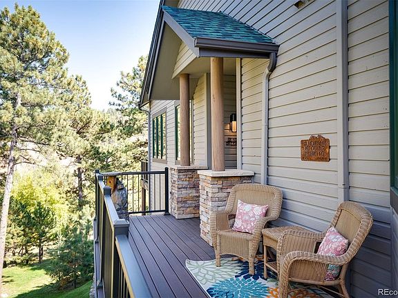 Incomparable and beyond expectations.  A refined blend of modern industrial and sophisticated casual describes this well appointed townhome. Open the newer front door to soaring ceilings, abundant windows and a comfortable, open floor plan.  The kitchen, living and dining areas transition seamlessly along with the primary bedroom ensuite for optimal main floor living. Gather your groceries from the car with a few short steps to the kitchen for unloading.  The heart of the home is the kitchen offering functionality, counter seating, quality appliances, large pantry, plenty of storage, and to top it all off a beverage bar with keg-orator and wine cooler. The focal point floor to ceiling gas fireplace is accented with reclaimed wood and metal beam.  The main floor primary bedroom is spacious with glass panel door leading to a large deck, views of the fresh evergreens, high ceilings, a decorative accent wall. An innovative sliding door closes off the ensuite bathroom, dual closets and dressing area for privacy. Metal railings lead way up the stairs to a multipurpose loft with builtin Murphy bed, privacy curtain, book shelves, flex space. The upper level ensuite is generous in size, offers plenty of sunshine and is equipped with additional A/C unit, full bathroom, double vanity, tub/shower combo with glass door. Two additional bedrooms and bathroom located on the walkout lower level give options for home office and 312 sq. ft. of storage space. Walk to Evergreen amenities. More notable details to mention are the whole house A/C, newer roof & windows on main & upper level, smart wired controls for lighting and blinds, Trex decking, retractable privacy shades on deck, fenced area for dogs, main level garage entry with bench, storage, stackable washer/dryer and extra overhead storage in garage. Every square foot has been maximized for best use. This impeccable home is in move in condition and will not disappoint.  Open house 2-4 pm both Sat, 9/30 and Sun, 10/1.