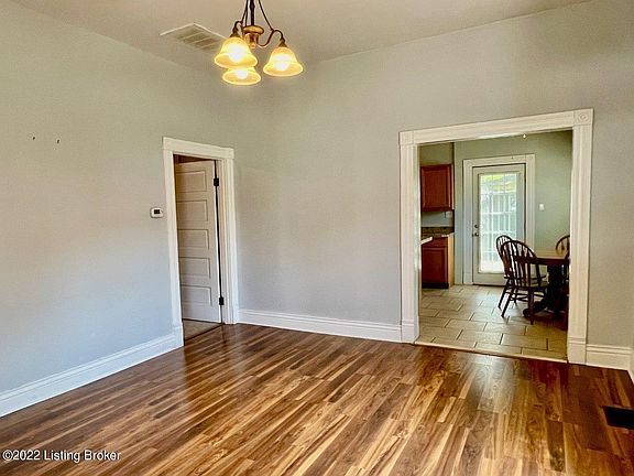 An absolute dollhouse, thought to be the original home built on Brookline Ave back in early 1900. Recent updates include roof (full 2010, rear roofing 2017), furnace AND air conditioner (both 2021). Replacement windows throughout (installed prior to this owner). Upon arrival you'll be greeted by the charming curb appeal, complete with mature trees, a large front window with flower box, and a welcoming covered front porch. Enter to the main living room that features high ceilings and new vinyl plank flooring (2022). At the front of the home there is the first of two full bedroom suites--this one has a ceiling fan, large bathroom with tiled walk-in shower, and an enormous walk-in closet. The primary suite also features a nicely-sized closet, ceiling fan, and has its own ensuite bathroom with tub/shower. This primary bathroom floor will need some repairs. The eat-in kitchen has plenty of cabinet space, a convenient moveable island, white kitchen appliances (including side-by-side double-door fridge, dishwasher, and electric range), tiled countertops, and a new backsplash installed just within the last year. Plenty of room for a dining table as well. The rear door leads out to a deck that overlooks the fully fenced back yard. The deck needs some immediate attention, as does the one-car garage with additional covered patio area?these items, along with the interior bedroom carpeting, are considered in the list price of the home. The home is being sold in its As-Is condition, and seller will not make repairs. Conveniently located in the Beechmont neighborhood, close to Iroquois Park and the Iroquois Park Amphitheater, Colonial Gardens, the Beechmont Farmers Market, interstate access and more.