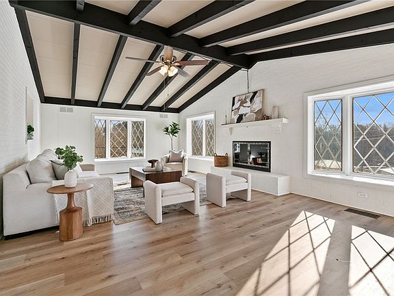 ~ Beautifully Updated Contemporary Home in Allison Park (Shaler Schools) ~ Set on a spacious corner lot on a quiet dead-end street, this fully renovated home combines style, comfort, and a prime location. Inside, the showstopping vaulted family room is sure to impress with exposed beams, bay windows, and a floor-to-ceiling brick fireplace. The modern kitchen features quartz countertops, stainless appliances, shaker cabinetry, and a passthrough for easy entertaining. With 4 bedrooms and 2.5 updated baths, there’s flexibility for offices, guests, gym, or anything you need. The finished walk-out basement adds a full bath, laundry, storage, and game room. Enjoy year-round comfort with central A/C and built-in radiant heat. Just minutes to Burchfield Primary, Fall Run Park, Hartwood Acres, Rt 8/28, shopping, and dining—plus a brand-new roof!