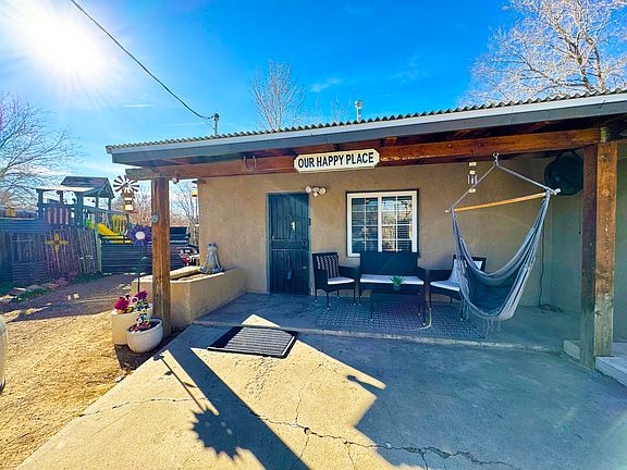 STUNNING unique hideaway with bright and open layout! This charming South Valley home with adobe features, is the perfect sanctuary for privacy, low traffic and entertaining! Complete with RV pad and full hookups, backyard 1.5 car garage, porched shed, tankless water heater, quartz and concrete countertops, recessed lighting throughout! This remodeled oasis will sell quickly! Come and take a look at this beauty! Close to Isotopes, Tingley, zoo, breweries, old town and stadium. **CHECK OUT 4K VIDEO TOUR**